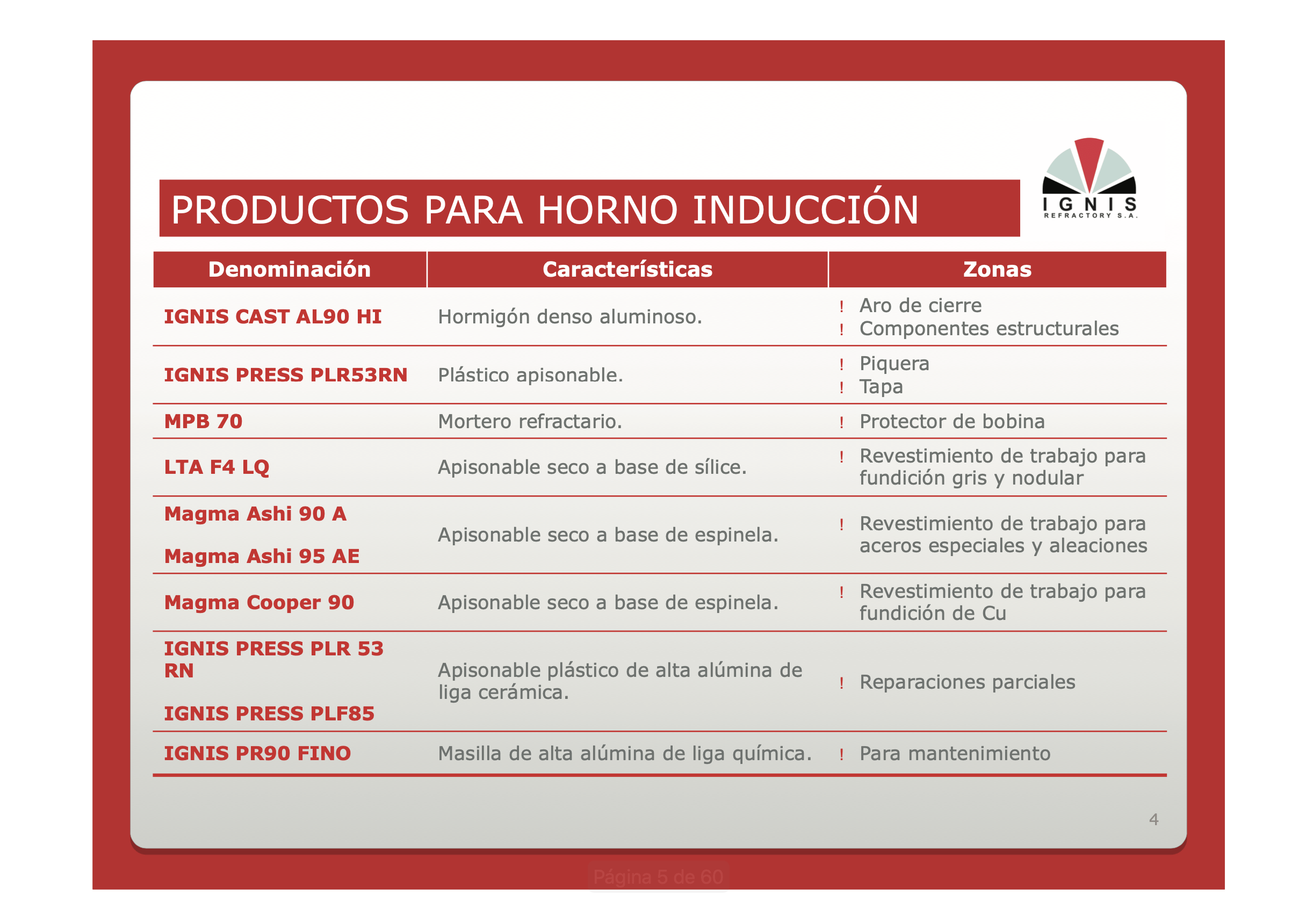 Especialidades refractarias secas y húmedas. Para aro de cierre de horno eléctrico inducción.